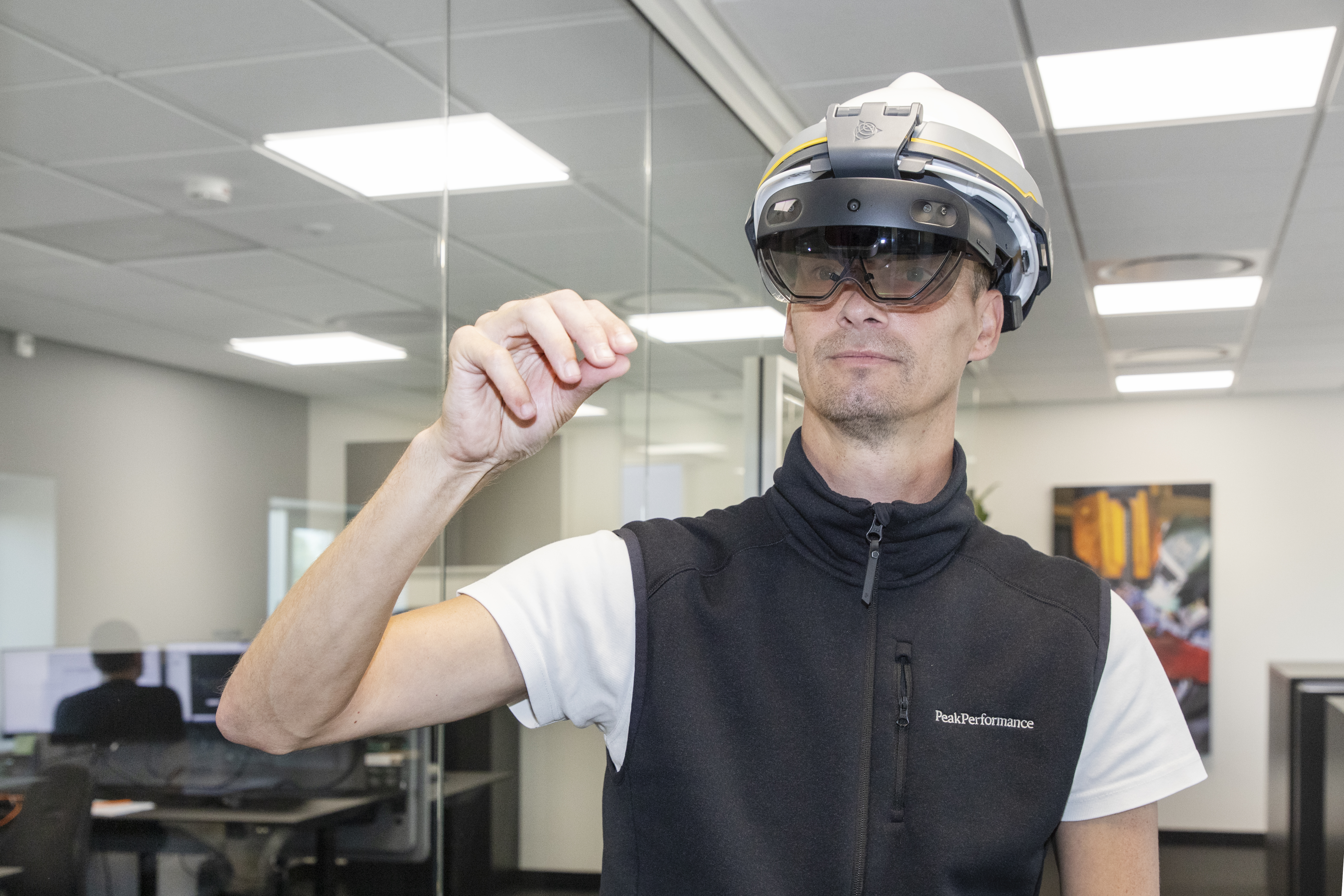 En af de spændende teknologier, vi tester, er Microsoft HoloLens, et Mixed Reality-headset.